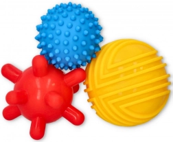 Das Set enthält drei Bälle, die aus sicherem und widerstandsfähigem Kunststoff hergestellt sind. Die Bälle helfen, die motorischen Fähigkeiten des Kindes zu entwickeln und gewährleisten, dass das Spielen sowohl unterhaltsam als auch lehrreich ist.