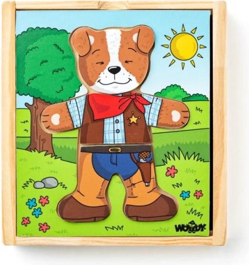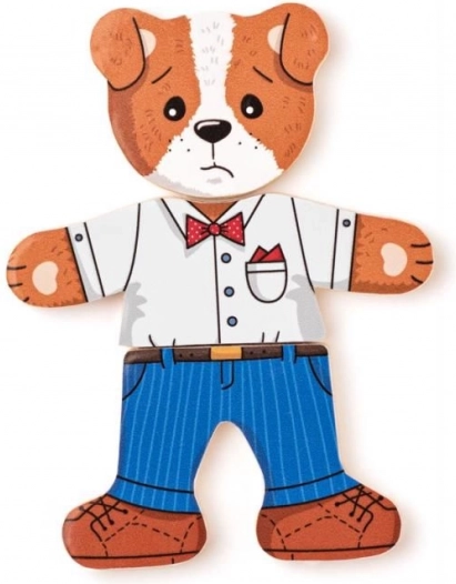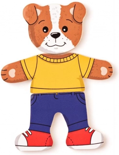 Das Anzieh-Puzzle mit Hündchenmotiv ist ein ideales didaktisches Spielzeug für die ersten Puzzelerfahrungen. Kinder können dem Hündchen verschiedene Outfits anziehen, Farben und Muster kennenlernen und ihre Kreativität beim Erzählen von Geschichten entwickeln. Das kleine Format passt in jede Tasche oder den Kinderrucksack für unterwegs.