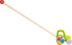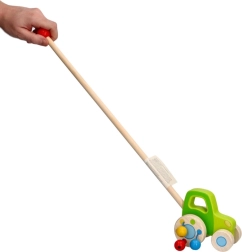 Der Holztraktor auf Stab ist so konzipiert, dass er Kinder zur Bewegung und Erkundung ermuntert. Aus massivem Holz gefertigt, bietet er Robustheit und Langlebigkeit. Auf den Hinterrädern befinden sich Perlen, die beim Fahren Geräusche erzeugen und so die Sinne der kleinen Entdecker weiter stimulieren.
