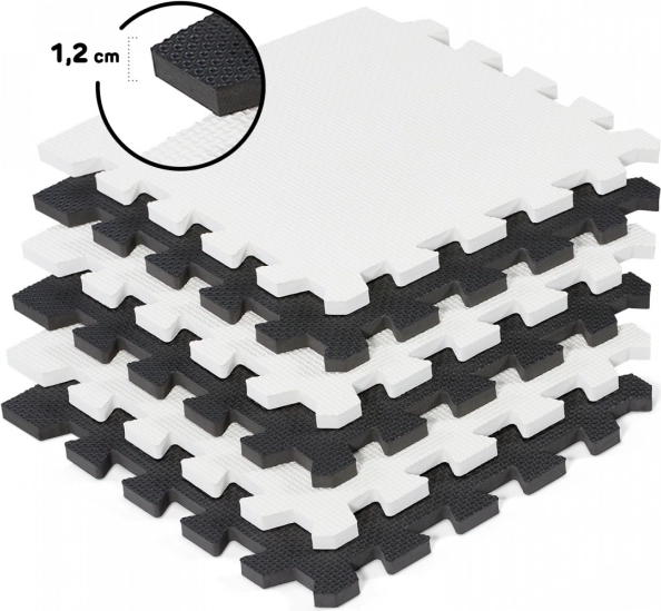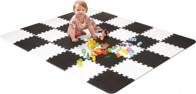 Die Luno-Puzzlematte in zeitlosem Schwarz-Weiß macht jede Kinderecke zu einem bequemen und sicheren Spielort. Dank der Stärke von 1,2 cm dämpft sie Stöße und Geräusche und isoliert zuverlässig gegen kalte Böden – ideal für Laminat, Fliesen oder Linoleum.