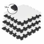 Die stilvolle schwarz-weiße Schaumstoff-Puzzlematte KINDERKRAFT Luno bietet Kindern ab 10 Monaten eine weiche und sichere Spielfläche. Die Teile lassen sich leicht wie ein Puzzle zusammenstecken, die Unterlage ist abwaschbar, dämpft Geräusche und isoliert gegen Kälte. Die geriffelte Oberfläche ist rutschfest und ohne herausnehmbare Teile. Stärke 1,2 cm, 30 Teile mit den Maßen 29,5 × 29,5 cm.