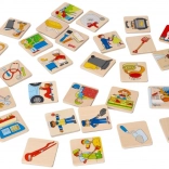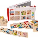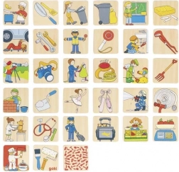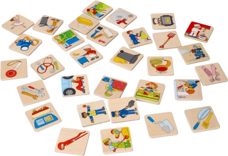 Das Holz-Memospiel Berufe von GOKI bietet Kindern und Erwachsenen cleveren Spielspaß, der Konzentration, logisches Denken und Kommunikation fördert. Jedes Paar zeigt einen Beruf und den dazugehörigen Gegenstand – Kinder lernen so ganz natürlich verschiedene Berufe und ihre Werkzeuge kennen.