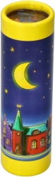Dieses kompakte Kaleidoskop mit dem Motiv eines Städtchens unter dem Sternenhimmel überzeugt durch leuchtende Farben und einfache Handhabung. Dank der handlichen Größe liegt es perfekt in kleinen Kinderhänden und eignet sich ideal für unterwegs und für das Spielen zu Hause.