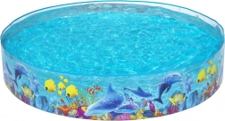 Der große runde Faltpool von BESTWAY ist ideal für den Garten oder die Wochenendhütte. Die Konstruktion stabilisiert sich nach dem Befüllen von selbst, die robusten PVC-Wände halten dem normalen Gebrauch stand und die Meeresgrafik mit Delfinen und Fischen begeistert Kinder sofort. Der Pool lässt sich leicht reinigen, zusammenlegen und für die nächste Saison verstauen.