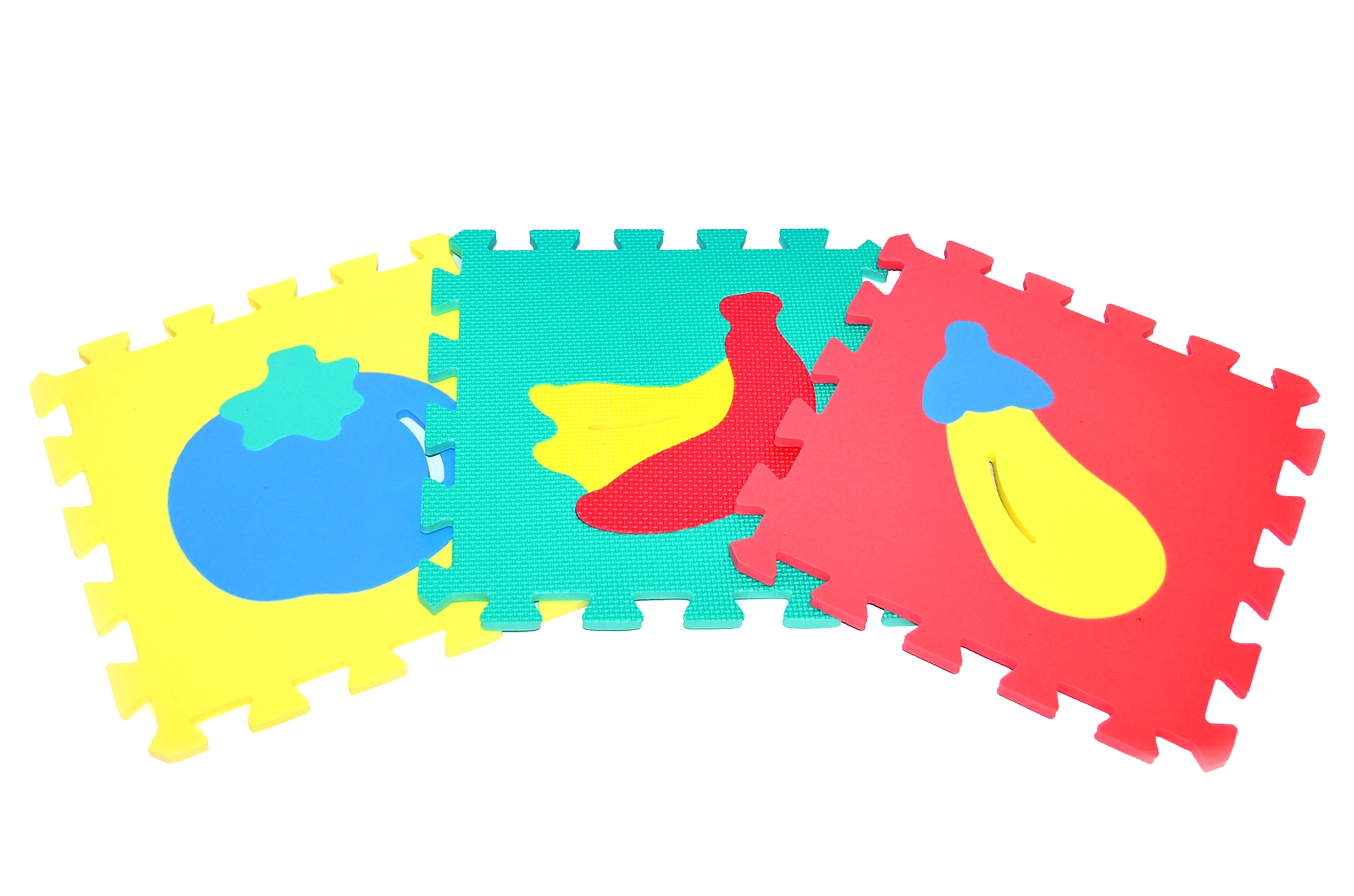 Weiche Schaumstoff-Puzzles mit Obstmotiven verwandeln jedes Kinderzimmer in einen sicheren und kreativen Spielbereich. Die Teile lassen sich leicht zu einem Boden-Teppich mit wärmeisolierenden Eigenschaften zusammenfügen, der Stöße angenehm abfedert. Das Material ist weich im Griff und kann bei Verschmutzung einfach mit einem feuchten Tuch abgewischt werden.