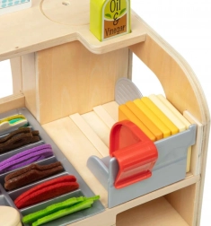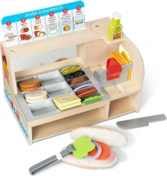 Diese realistische Sandwich-Theke ermöglicht Kindern, eigene Kombinationen aus Brot, Käse, Gemüse und Soßen zu kreieren. Holz- und Filzteile liegen angenehm in der Hand und sind robust – für Spielspaß jeden Tag. Außerdem enthalten sind eine übersichtliche Sortierung der Zutaten und einfache bildliche Anleitungen, die Kinder Schritt für Schritt führen.