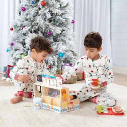 Das Spiel als Imbiss oder Kaufmannsladen fördert Kommunikation, Fantasie und Selbstständigkeit. Dank der stabilen Konstruktion und der durchdachten Aufteilung ist das Set ideal für zu Hause und für Kindergärten.