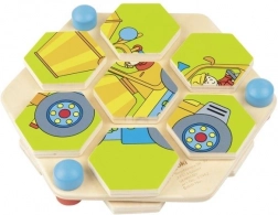 Lassen Sie Ihre Kinder in die kreative Welt dieses wunderschönen Holz-Sechseck-Puzzles eintauchen. Jedes rotierende Sechseck muss korrekt platziert werden, um ein buntes Bild von Baustellenfahrzeugen zu erstellen. Dieses Puzzle ist auf einer stabilen, natürlichen Holzplatte positioniert, die Langlebigkeit und Umweltfreundlichkeit garantiert. Das Spielzeug bietet nicht nur stundenlangen Spaß, sondern hilft auch, das logische Denken und die Hand-Auge-Koordination zu entwickeln.