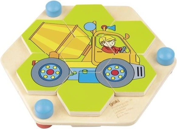 Holz Sechseck Puzzle Baustellenfahrzeuge Goki