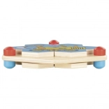 Die sechseckigen Teile mit blauen Knöpfen sind so gestaltet, dass sie gut in Kinderhände passen und die Feinmotorik sowie die Koordination fördern.