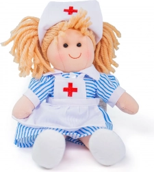Blau-weiße Streifen, weiße Schürze und Mützchen mit rotem Kreuz regen die Vorstellungskraft an und lehren Kinder, sich um andere zu kümmern.