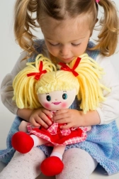 Lucinka ist eine niedliche Stoffpuppe mit einer Höhe von 30 cm, ideal für die ersten Kuschel- und Spielmomente. Beim Drücken des Bäuchleins sagt sie auf Tschechisch: „Ahoj, já jsem Lucinka a naučím tě písničky“ und singt beliebte tschechische Lieder, die Kinder kennen und lieben.
