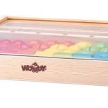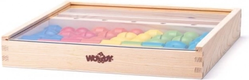 Die stabile Holzbox dient als Aufbewahrung und als Basis für das Spiel. Alles hat seinen Platz und ist leicht zu transportieren.