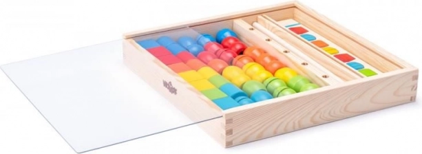 Bunte Perlen und Stäbe fördern das Erkennen von Farben und Formen sowie die Entwicklung der Feinmotorik und die Hand-Auge-Koordination.