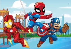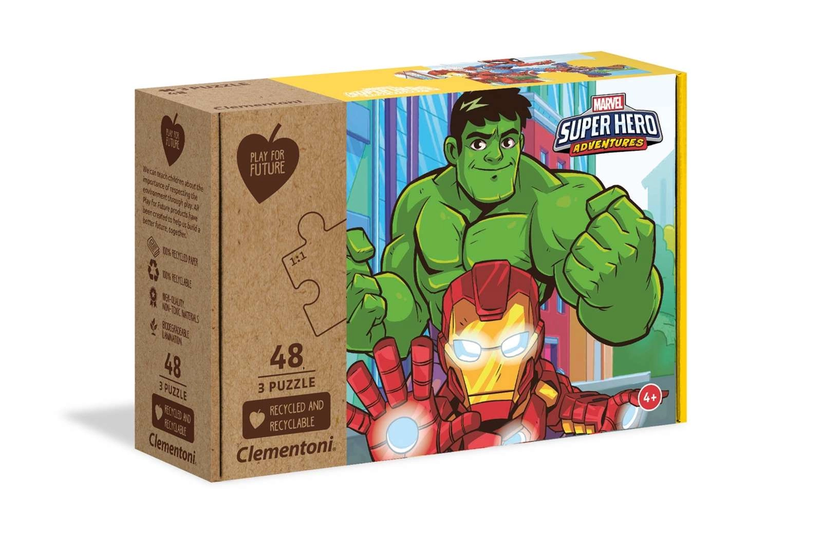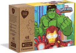 Entdecken Sie den Puzzlespaß mit den Helden von MARVEL Super Hero Adventures. Dieses Set enthält 3 separate Puzzles mit jeweils 48 Teilen, die nach dem Zusammensetzen farbenfrohe Illustrationen in der Größe 32 × 22 cm ergeben. Lebhafte Farben und spannende Motive sorgen für viele Stunden Freude und fördern die Fantasie der Kinder.