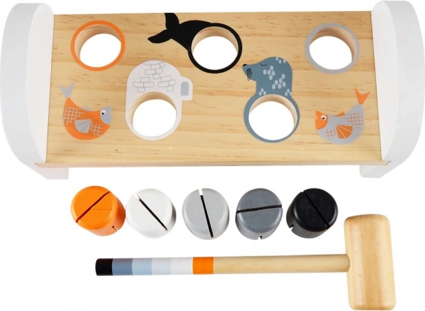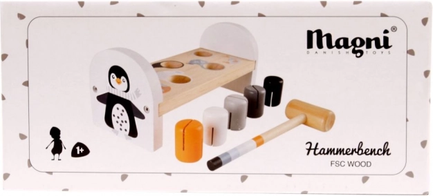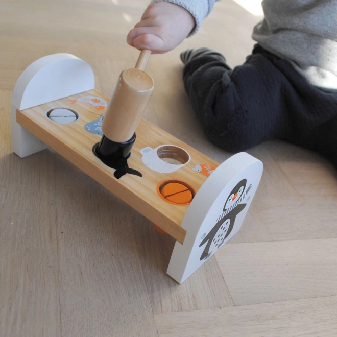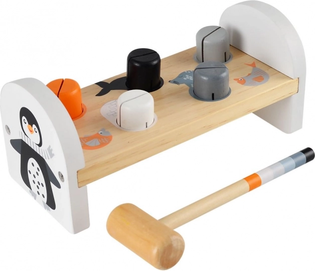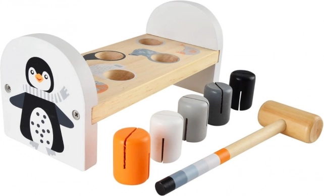Diese robuste Holz-Hammerbank mit niedlichem Pinguinmotiv bietet Kindern jede Menge Spaß und Lernmöglichkeiten. Mit Hilfe des Hammers schlagen Kinder nach und nach bunte Stifte ein und entwickeln dabei ganz natürlich motorische Fähigkeiten, Geduld und logisches Denken. Die kompakten Abmessungen sind ideal für kleine Hände und für das Spielen zu Hause oder unterwegs.