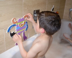 Die Monster in diesem Set bestehen aus einem speziellen Schaumstoff, der leichtes Anbringen ermöglicht. Nur ein Tropfen Wasser reicht aus und Sie können sie nicht nur an der Badewanne, sondern auch auf Fliesen, Glas oder untereinander befestigen. So können Sie stets neue und unterhaltsame Szenarien direkt in Ihrem Badezimmer erstellen.