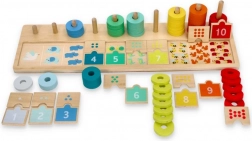 Ein unterhaltsames Holz-Set für Kinder ab 12 Monaten, das das Erlernen der Zahlen 1–10, das Sortieren von Farben und die Entwicklung der Feinmotorik verbindet. Eine stabile Grundplatte mit Stiften, bunte Ringe und Zahlenteile fördern logisches Denken sowie die Hand-Augen-Koordination.