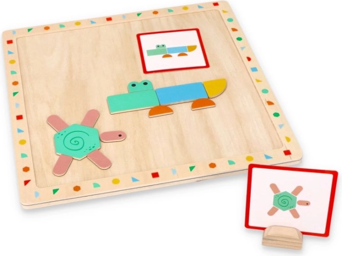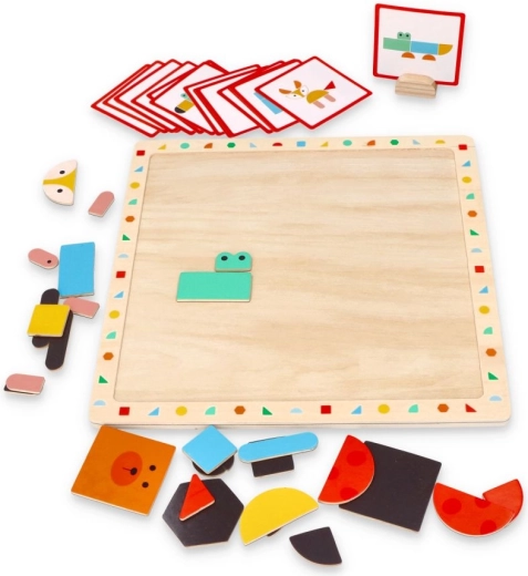 Für mehr Komfort enthält das Set auch einen Holzblock mit Aussparung, in den eine Motivkarte eingelegt werden kann, um das Muster bequemer zu betrachten und anzuordnen.