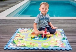 Das Schaumstoff-Bodenpuzzle Dorf ist die ideale Wahl für Kinderzimmer und Spielecken. Die Teile mit Farbdruck ergeben eine Spielfläche, die sich angenehm anfühlt, leicht zu pflegen ist und Kinder zugleich vor Kälte vom Boden schützt. Die gerippte Oberfläche ohne herausnehmbare Elemente erhöht die Sicherheit beim Spielen.