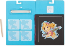 Der Spiralblock mit schwarzen Seiten enthüllt beim Kratzen leuchtende Farben und Motive aus Paw Patrol. Ideal für die ersten Zeichenversuche.