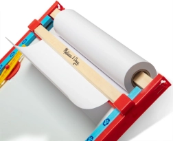 Der integrierte Halter mit Papierrolle unterstützt Malen mit Pinseln und Filzstiften. Einfach abreißen und fertige Bilder ausstellen.