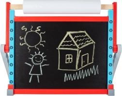 Eine Seite als klassische Kreidetafel, die andere als weiße magnetische Fläche für Marker und Magnete. Kinder können Techniken und Zeichenstile leicht abwechseln.