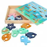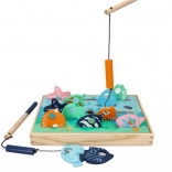 Das Holz-Angelspiel ist für Kinder entworfen, die gerne spielen und neue Dinge lernen. Dieses interaktive Set umfasst Holzruten mit Magneten und bunt bemalte Fische, die so gestaltet sind, dass sie das Fangen echter Fische simulieren.