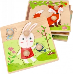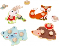 Holzpuzzles und Steckspiele