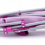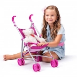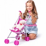 Der Wagen ist mit einem stabilen Metallrahmen und einem bequemen Stoffsitz ausgestattet. Kleine Mädchen können ihre Pflegefähigkeiten üben, während sie Spaß haben. Das klassische Design ermöglicht eine einfache Nutzung sowohl drinnen als auch draußen.