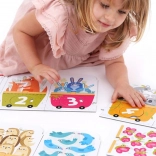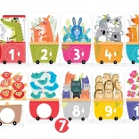 Die Illustrationen sind altersgerecht gestaltet, große Elemente aus starkem Karton liegen gut in Kinderhänden und halten häufigem Puzzeln stand. Das Spiel ist flexibel – Passagiere und Zahlen können beliebig getauscht und neue Kombinationen ausprobiert werden, was Kreativität und selbstständiges Entdecken fördert.
