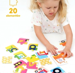 Entdecken Sie das erste Puzzle für die Kleinsten! Das Set enthält 5 bunte Puzzles mit jeweils 4 Teilen mit niedlichen Fahrern und Fahrzeugen. Stabile Teile liegen gut in kleinen Händen und fördern Feinmotorik, Aufmerksamkeit sowie Farben- und Wortschatzlernen. Einzigartig ist die Möglichkeit, Teile zwischen den Puzzles zu tauschen und eigene Kombinationen zu gestalten.