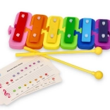 Im Lieferumfang sind zwei leichte Kunststoffschlägel enthalten, die gut in Kinderhänden liegen und auf den Metallplättchen einen klaren Klang erzeugen.