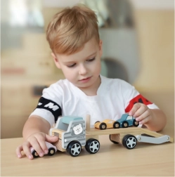 Abschleppwagen mit Anhänger + 3 Holzautos