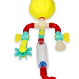 Ein fröhliches Wassersystem mit Trichter, Röhren und Wasserrad bringt Abwechslung in jedes Bad. Das Kind gießt Wasser in den Trichter und beobachtet, wie der Wasserstrom verschiedene Wege nimmt. Dieses interaktive Spielzeug fördert die Hand-Auge-Koordination und unterstützt das natürliche Entdecken physikalischer Phänomene.