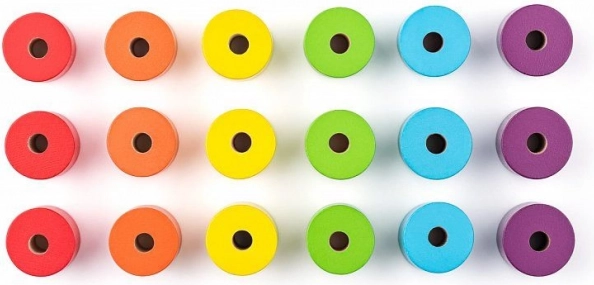 Große Holzperlen mit Loch zum einfachen Durchfädeln sind ein tolles Hilfsmittel für Zuhause und Kindergarten. Dank der kräftigen Farben und des angenehmen Materials üben Kinder gern das Sortieren, Legen und Auffädeln und trainieren dabei spielerisch Fähigkeiten, die für das Schreiben und die Konzentration wichtig sind.