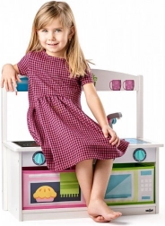 Im Küchenmodus ahmen Kinder Erwachsene nach, lernen die Grundlagen des Kochens und entwickeln ihre Fantasie. Nach der Umwandlung in eine Bank erhalten Sie einen praktischen Platz zum Sitzen oder Ausruhen. Kompakte Abmessungen von 59 × 58 × 31,5 cm sparen Platz und machen dieses Spielzeug zur idealen Wahl für kleinere Zimmer.