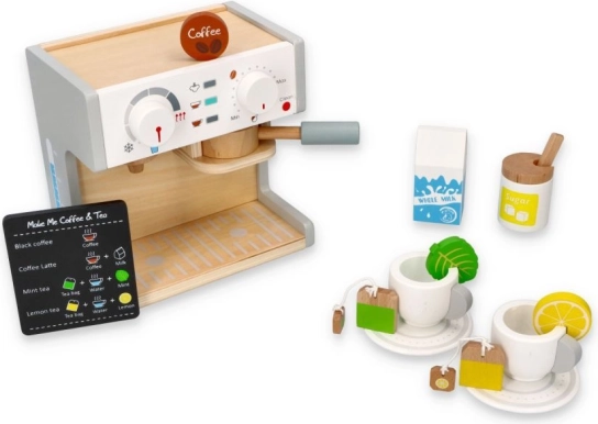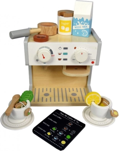 Die Kaffeemaschine und der Teekocher imitieren echte Küchengeräte, was den Kindern ein realistisches Spielen ermöglicht.