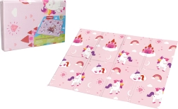 Die Matte kann leicht zusammengerollt und aufbewahrt werden, damit sie nicht viel Platz wegnimmt. Dank der schönen Muster eignet sie sich für alle kleinen Einhornliebhaberinnen.