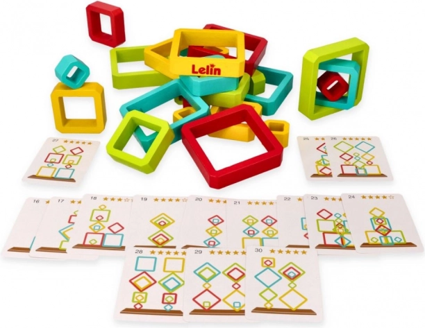 Im Set sind Lehrkarten enthalten, die verschiedene Konfigurationen zum Puzzeln darstellen. Kinder können versuchen, die Designs auf den Karten nachzubauen oder ihre eigenen originellen Strukturen zu erstellen.