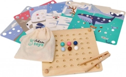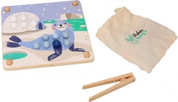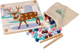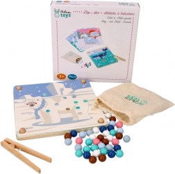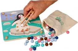 Dieses unterhaltsame Lernspiel verbindet die natürliche kindliche Neugier mit dem Training wichtiger Fähigkeiten: Mit der Holzpinzette setzen Kinder Kugeln um und legen sie entsprechend den Farben und Vorlagen mit Motiven arktischer Tiere (Pinguin, Seehund, Rentier, Eisbär) in die Vertiefungen. Das Spiel fördert Konzentration, präzisen Griff und eine sichere Hand – ideal für Vorschulkinder.