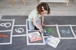 Die massive Holzplatte, die Holzpinzette und der Textilbeutel mit Kugeln gewährleisten eine sichere und langlebige Nutzung zu Hause und im Kindergarten.