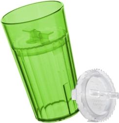 Ein spezieller Einsatz im Inneren des Bechers verlangsamt den Flüssigkeitsstrom, sodass das Kind sicher das Trinken aus einem offenen Becher ohne Sauger und Strohhalme erlernt.