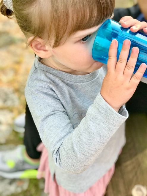 Kinder lernen, aus einem offenen Becher natürlich und sicher zu trinken. Die Durchflusskontrolle hilft, Verschütten bei den ersten Versuchen zu reduzieren.