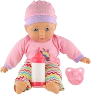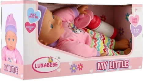 Die Puppe wird mit einer Flasche und einem Schnuller geliefert, was den Kindern ein realistisches Spielerlebnis bietet. Dank ihres weichen Körpers eignet sie sich auch zum Kuscheln und bietet ein Gefühl der Sicherheit.