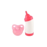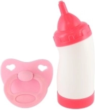 Im Set sind eine Flasche und ein Schnuller enthalten, die realistisches Spielen und Pflege unterstützen.