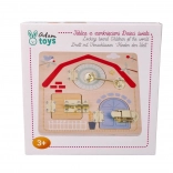 Dank der kompakten Abmessungen von 22 × 22 cm eignet sich die Tafel für zu Hause und unterwegs. Massivholz und Metallkomponenten sind verschleißfest und für den täglichen Gebrauch geeignet. Das Spielzeug erfüllt die Sicherheitsnormen und verfügt über eine CE-Konformitätserklärung.