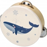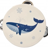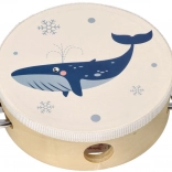 Dieses Kindertamburin mit fröhlichem Wal-Motiv ist ein tolles Musikinstrument für erste rhythmische Experimente. Der Holzkorpus, das gespannte Fell und die Metallschellen erzeugen einen angenehmen Klang, der Kinder zum Spielen und Entdecken von Musik motiviert.