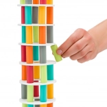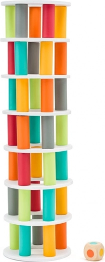 Der Würfel bestimmt die Farbe des Teils, das herausgezogen oder hinzugefügt werden soll. Jeder Zug prüft Geschick und Nerven – wer hält den Turm länger im Gleichgewicht?