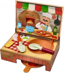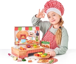 Pizzeria Carlo ist das ideale Spielzeug für Kinder ab 3 Jahren, das ihre Vorstellungskraft anregt. Das Holzpizza-Set enthält verschiedene farbenfrohe Zutaten und Küchenwerkzeuge, die echtes Kochen imitieren. Dieses Spielzeug ist eine großartige Möglichkeit, wie Kinder mehr über verschiedene Lebensmittelarten lernen und gleichzeitig ihre sozialen Fähigkeiten beim Spielen mit Gleichaltrigen verbessern können.